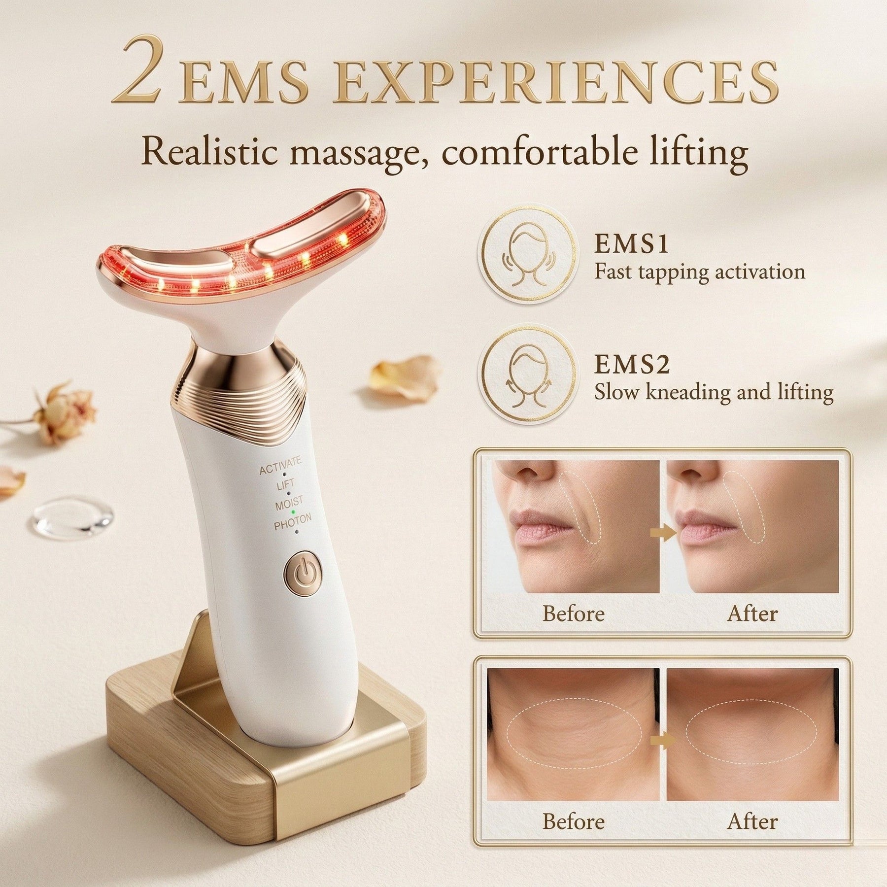 Elevate your skincare routine with professional-grade technology. This all-in-one beauty device brings the power of EMS, LED therapy, and ionic technology to your fingertips, making it easier than ever to achieve lifted, toned, and youthful-looking skin from the comfort of home.