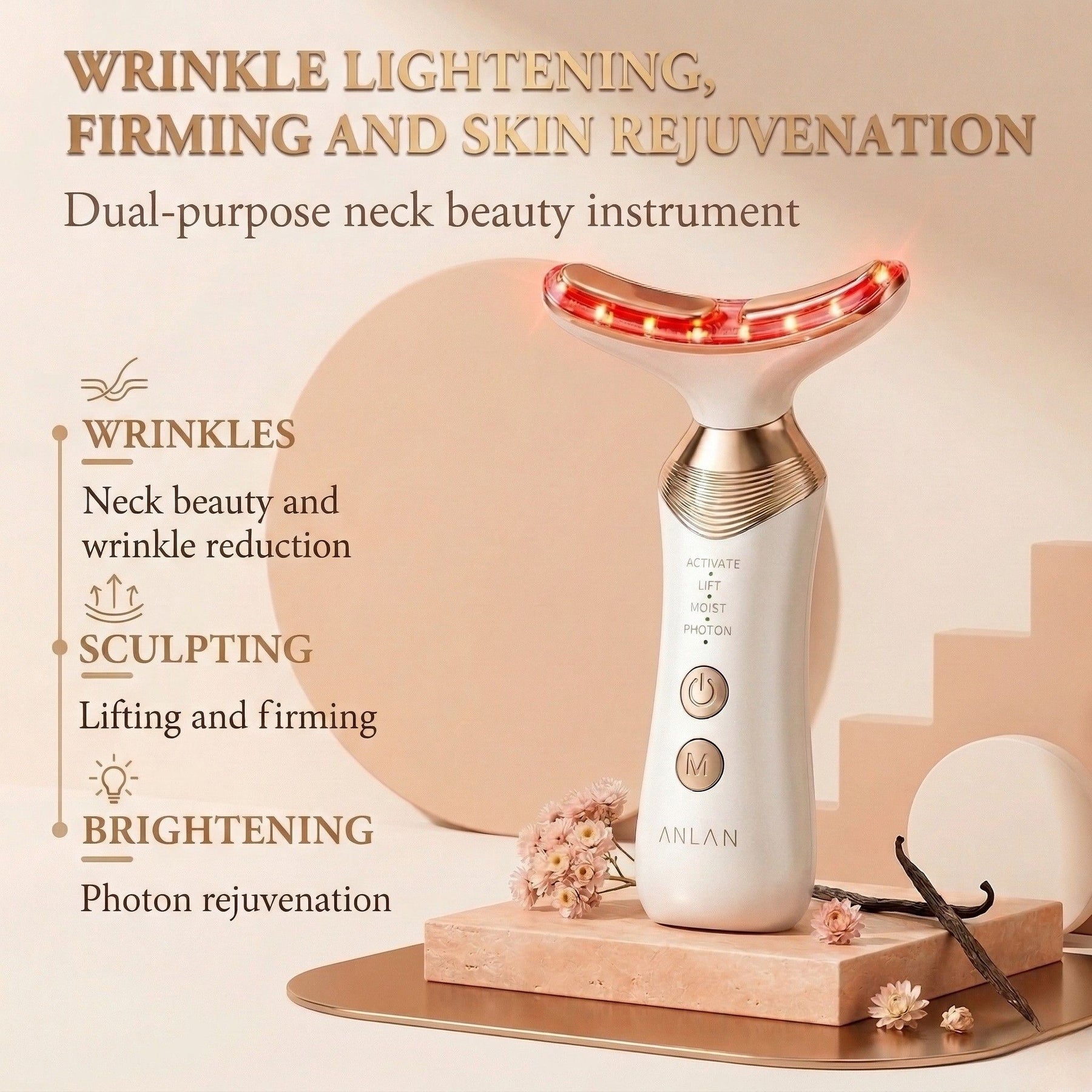 Experience salon-quality skincare at home with this sophisticated beauty device that combines five powerful technologies in one elegant tool. Designed to target both facial and neck concerns, this versatile device delivers professional anti-aging results while fitting seamlessly into your daily routine.