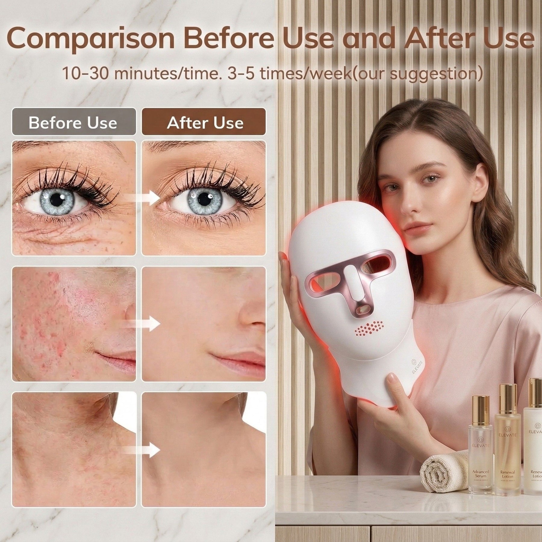 - Full Coverage Treatment: Treats face and neck together for comprehensive anti-aging results