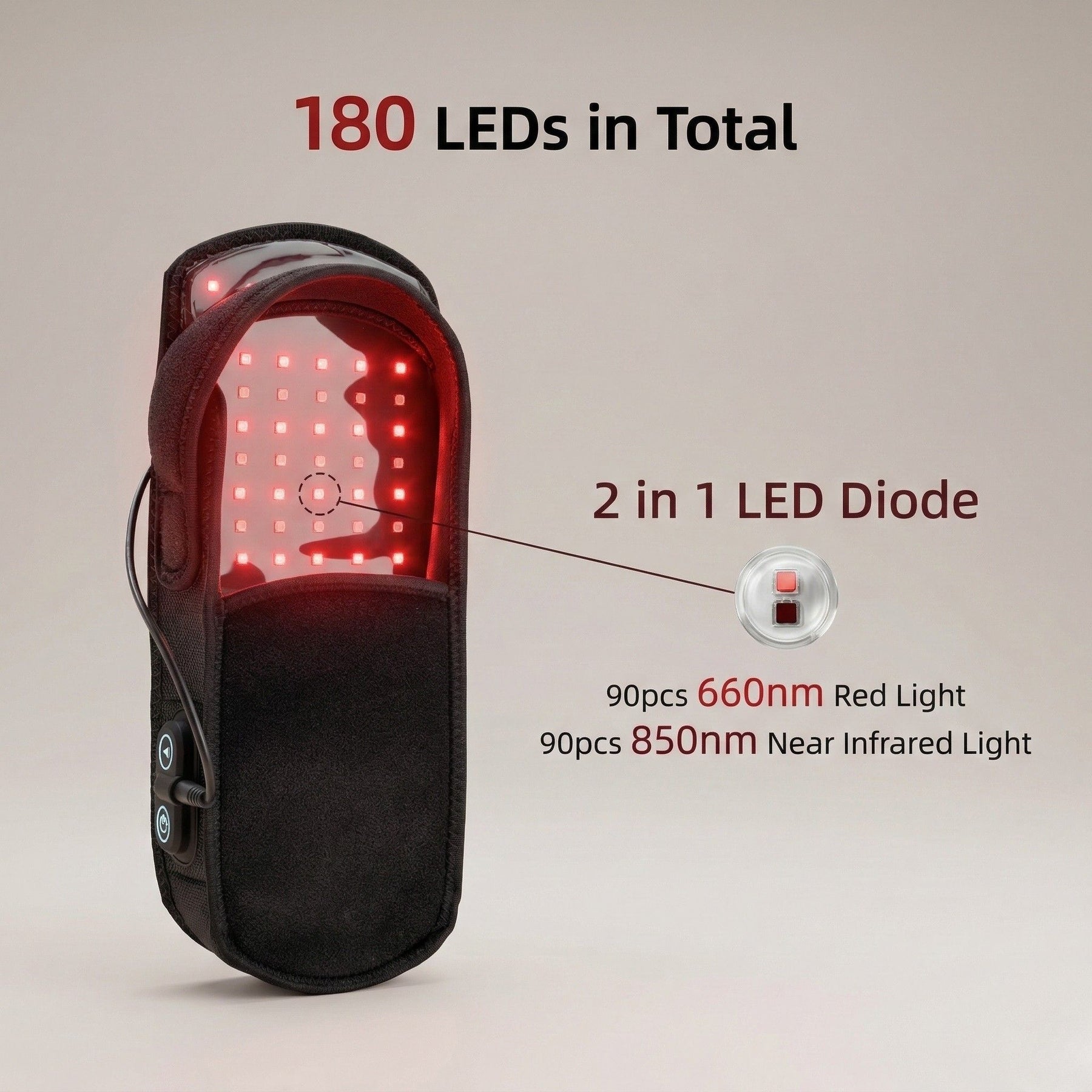 - 850nm Near-Infrared Light: Reaches deeper into muscles, joints, and bones for comprehensive pain relief and recovery