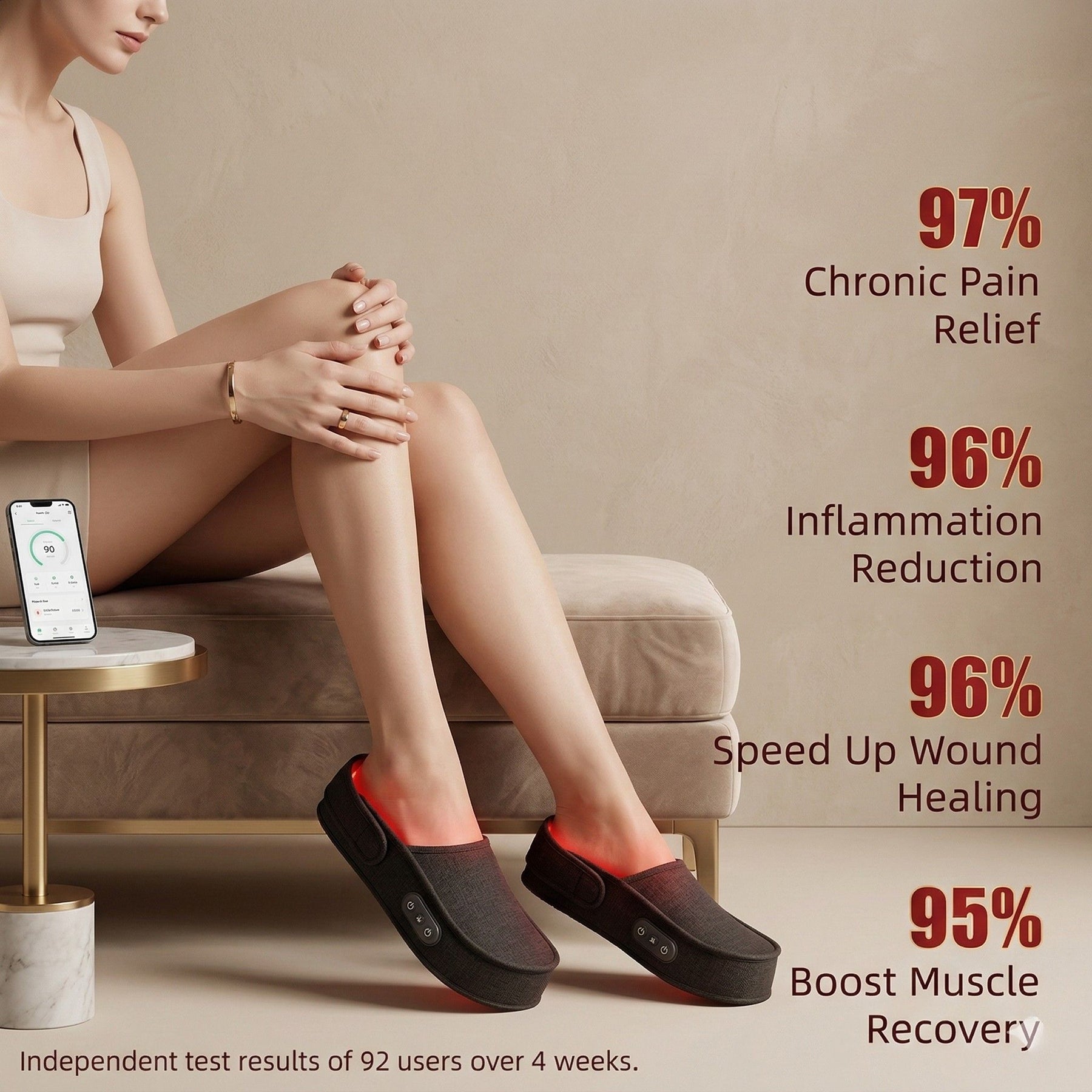 Simply slip these therapy slippers on your feet while you relax on the couch, work at your desk, read a book, or watch TV. The hands-free, wearable design lets you enjoy therapeutic benefits without interrupting your day. Perfect for morning energizing sessions, post-workout recovery, or evening relaxation before bed.